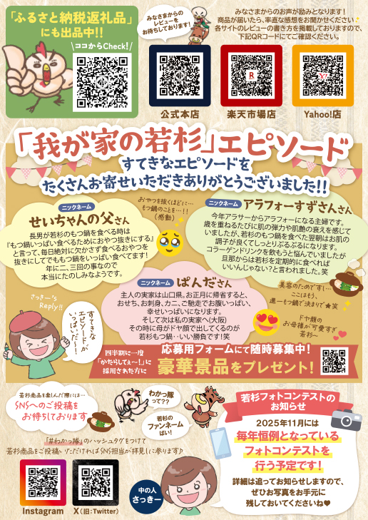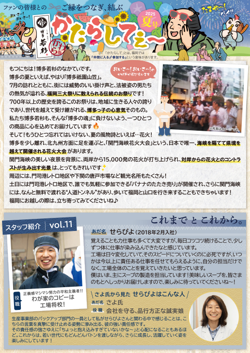 本日は2025年6月~2025年8月頃に商品と一緒にお届けしていた博多若杉かわら版、「かたらしてぇ~!(夏号)第二弾」のバックナンバーをご紹介します♪